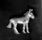 Pewter donkey pin, tietack back Spotted Donkey pin, tietack back About 1 1/2" long. $4.00 each (postage $1.00) about 1" long. $6.00 , postage $1.00 Also available - A Hee Haw Exclusive!!!